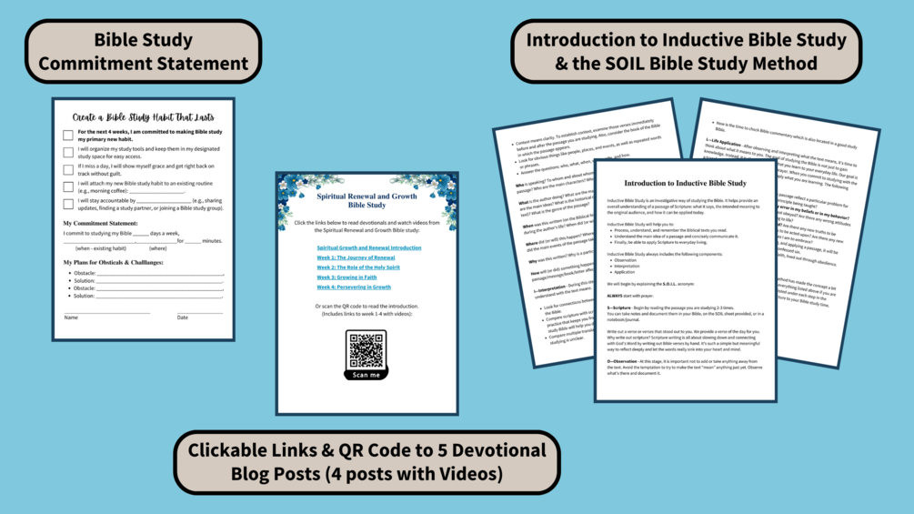 ✅ Clickable Links & QR Code to 5 Devotional Blog Posts (4 posts with Videos) – Access additional teachings and video devotionals to enhance your study.
